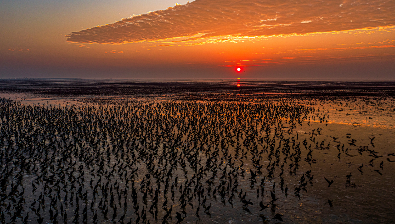 山東黃河三角洲自然保護(hù)區(qū)內(nèi)的候鳥(niǎo)集群 張曉龍攝(國(guó)家林草局供圖)