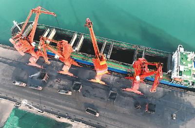 連日來,江蘇連云港港加快冬季電煤運(yùn)輸和儲(chǔ)備,全力保障發(fā)電企業(yè)供暖用煤需求。圖為11月22日,貨輪在連云港港煤炭碼頭卸載電煤。王春攝(人民視覺)