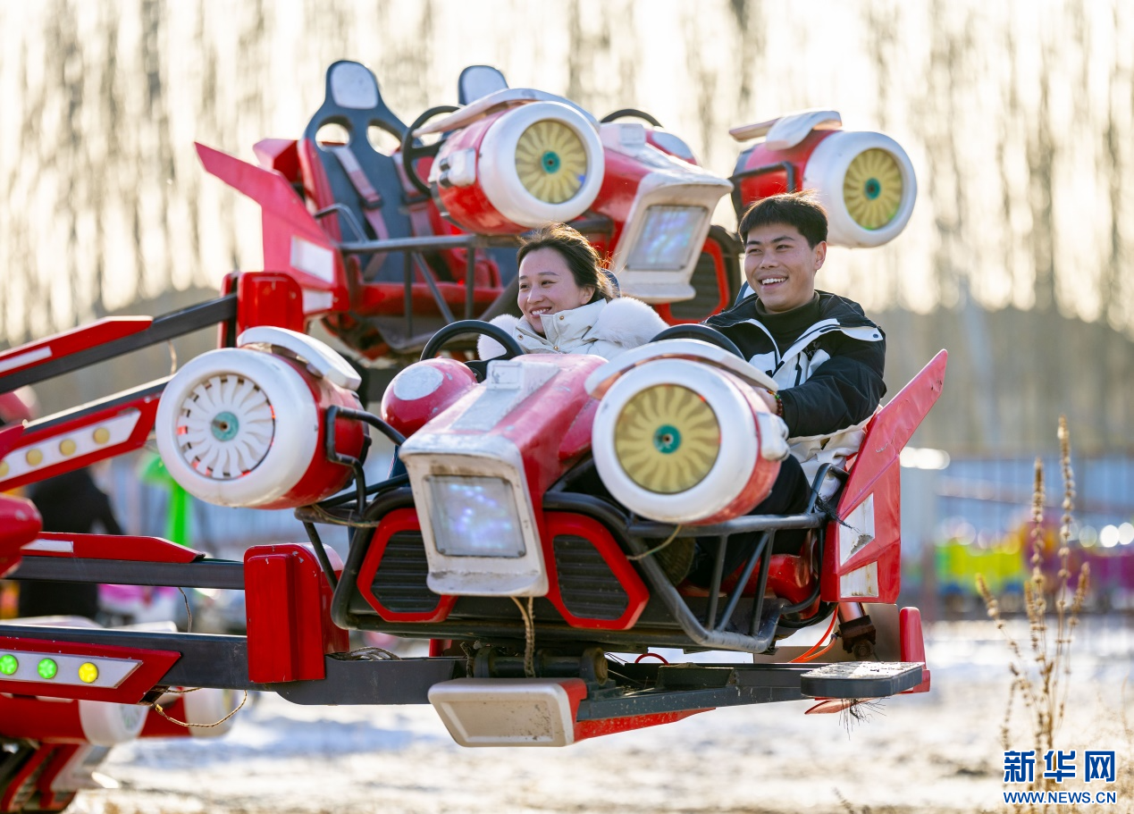 12月7日,游客在呼和浩特市玉泉區(qū)大庫(kù)倫村“冰雪大世界”內(nèi)體驗(yàn)“旋轉(zhuǎn)飛機(jī)”項(xiàng)目。新華網(wǎng)發(fā)(丁根厚 攝)