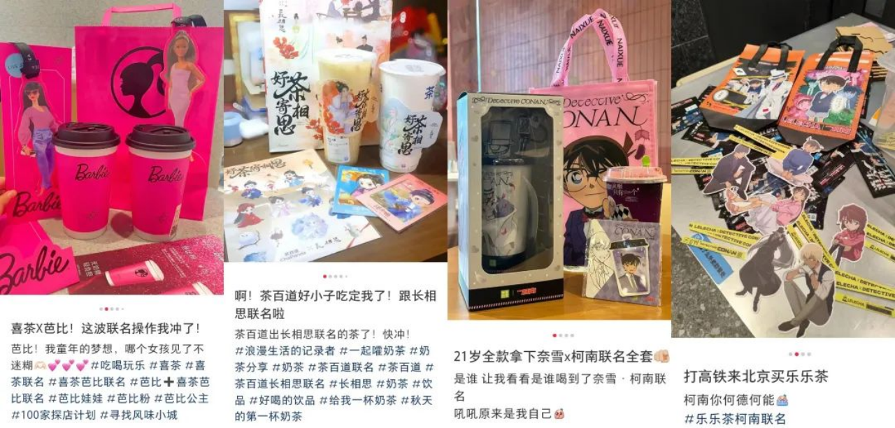 2023年,提及新式茶飲行業(yè)的營(yíng)銷策略,跨界聯(lián)名是繞不開(kāi)的重要話題。喜茶聯(lián)名芭比、茶百道聯(lián)名《長(zhǎng)相思》、奈雪的茶和樂(lè)樂(lè)茶聯(lián)名《名偵探柯南》……僅11月便至少有4個(gè)茶飲品牌開(kāi)展過(guò)聯(lián)名活動(dòng),可以說(shuō)是你方唱罷我登場(chǎng)。新茶飲的聯(lián)名對(duì)象包含影視、動(dòng)漫、游戲、奢侈品等諸多領(lǐng)域,推出的聯(lián)名新品也讓許多網(wǎng)友不禁感嘆“雙廚狂喜”并躍躍欲試。為什么現(xiàn)今新茶飲行業(yè)如此偏愛(ài)跨界炒CP?消費(fèi)者又為何愿意嗑CP?