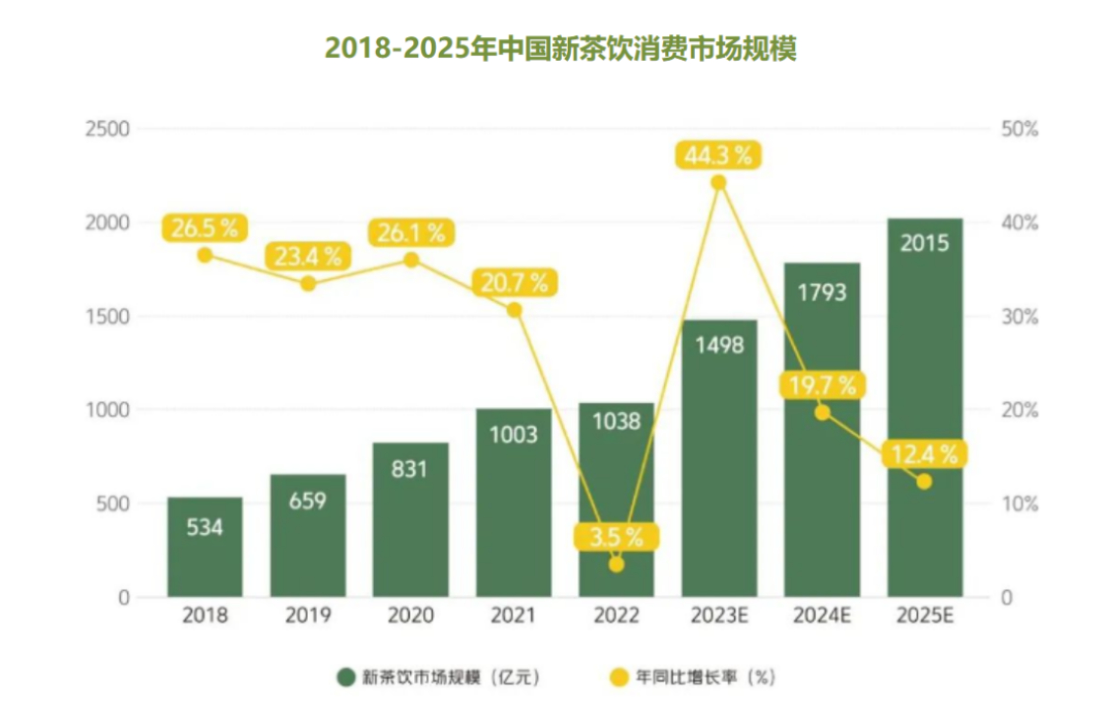 近年來(lái),新式茶飲行業(yè)規(guī)模不斷擴(kuò)大。中國(guó)連鎖經(jīng)營(yíng)協(xié)會(huì)與美團(tuán)聯(lián)合發(fā)布的《2023新茶飲研究報(bào)告》顯示,2023年全年新茶飲消費(fèi)市場(chǎng)規(guī)模預(yù)計(jì)達(dá)到1498億元,且此后將進(jìn)一步保持增長(zhǎng)。據(jù)不完全統(tǒng)計(jì),2023年8月31日在業(yè)的新茶飲門店總數(shù)約51.5萬(wàn)家,與2020年年底相比增長(zhǎng)超36%。據(jù)美團(tuán)數(shù)據(jù),2023年上半年,美團(tuán)平臺(tái)新茶飲外賣用戶達(dá)到1.78億人,比去年同期增長(zhǎng)了20.3%。興業(yè)證券研報(bào)分析稱,新式茶飲行業(yè)市場(chǎng)規(guī)模巨大、前景廣闊,新茶飲消費(fèi)走向常態(tài)化。