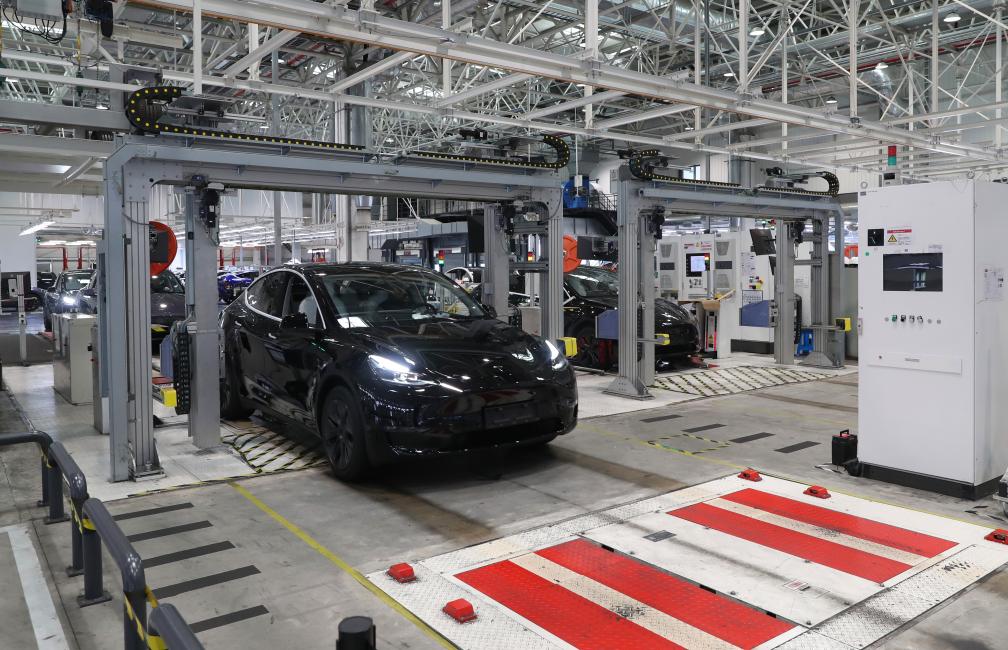 12月22日,在特斯拉上海超級(jí)工廠內(nèi),一輛特斯拉電動(dòng)汽車在進(jìn)行出廠前的車載電子設(shè)備檢測。新華社記者方喆 攝