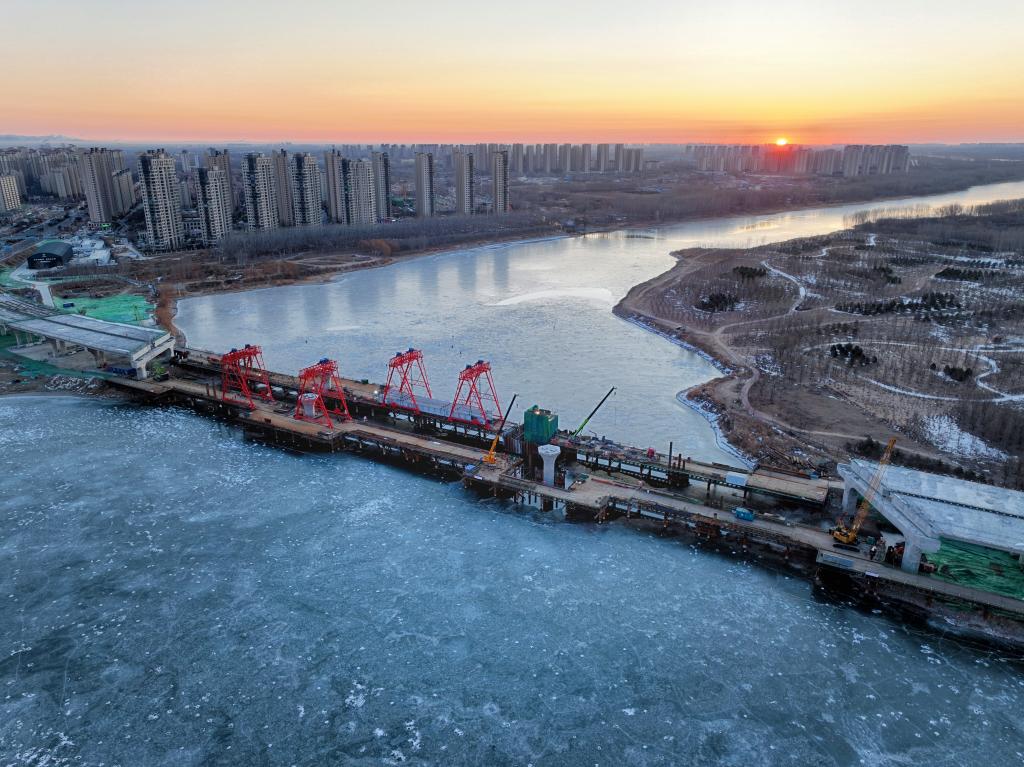 廠通路潮白河大橋項目建設(shè)現(xiàn)場(無人機(jī)照片)。新華社記者 邢廣利 攝