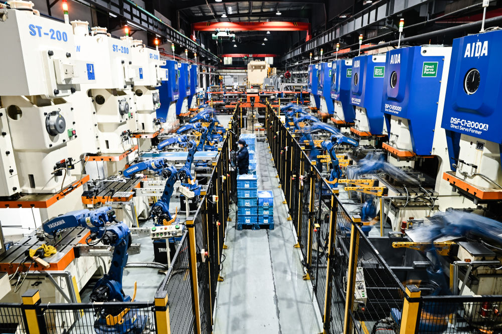 2024年2月28日,在“江蘇省專(zhuān)精特新中小企業(yè)”無(wú)錫微研精工科技有限公司智能生產(chǎn)車(chē)間,機(jī)械臂在作業(yè)。新華社記者 季春鵬 攝