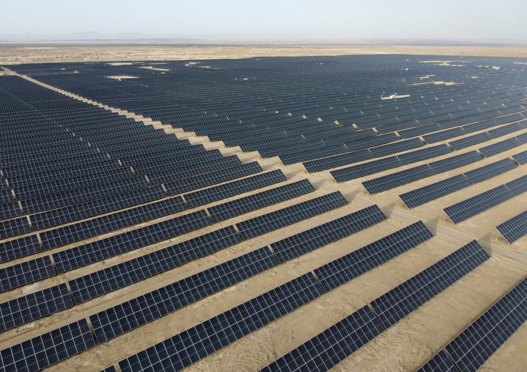 這是2023年9月拍攝的中國(guó)石油塔里木油田尉犁縣10萬千瓦光伏發(fā)電項(xiàng)目(無人機(jī)照片)。新華社記者郝建偉 攝