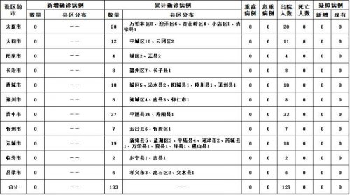 山西無新增新冠肺炎確診病例 新增治愈出院1例